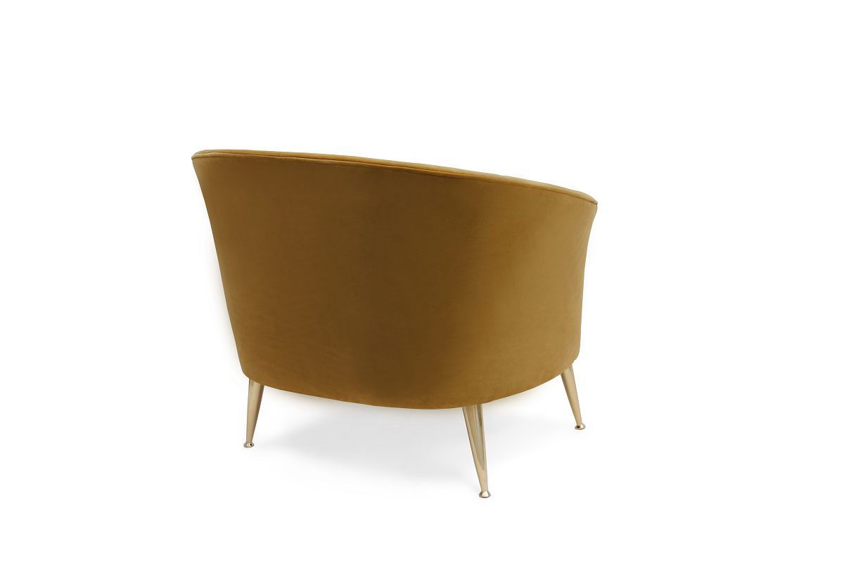 Le due poltrone MAYA scelte per rendere l’arredamento della reception accogliente, sono state realizzate con un intenso color dorato impreziosito dal tessuto in velluto. Le forme delicate e sensuali di questa poltrona sono ispirate alla divinità Maya del mais, rendendola la miglior soluzione per una seduta confortevole.