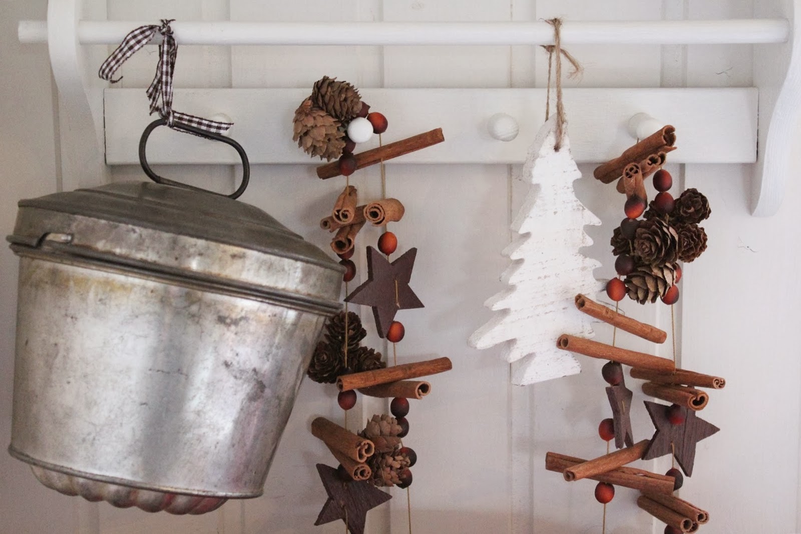 Un vecchio stampo da dolce, un comune spago in cui infilare un semplice alberello di legno, stecche di cannella, pigne, stelline.